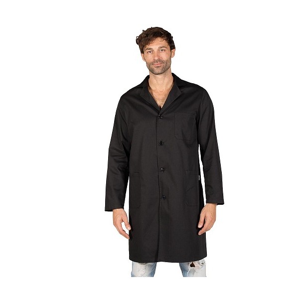Bata básica unisex, en manga larga, con cierre mediante botones de pastilla y cuello con solapa. Modelo holgado, con costadillos en la espalda y cinturón trasero. Cuenta con un bolsillo en el pecho izquierdo y dos bolsillos de parche en la cintura. Confeccionada en SARGA de una amplia variedad de colores. Ideal como uniforme para hospital, clínica, centro médico, laboratorio, farmacia y demás profesionales sanitarios, veterinaria, almacén, industria alimentaria, colegio, guardería o comercio en general.