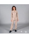 La chaqueta de mujer PINEDA está equipada con dos bolsillos laterales, brindándote espacio para llevar contigo los elementos esenciales, como una libreta de anotaciones o un dispositivo para tomar pedidos. El cierre mediante botones de presión ocultos en el frente añade un toque de sofisticación y mantiene un aspecto ordenado. El corte semi ajustado de esta chaqueta, junto con las costuras en la parte delantera y trasera, ofrece un equilibrio perfecto entre estilo y comodidad. Esta chaqueta está confeccionada en SARGA color arena de 100% POLIÉSTER RECICLADO, formando parte de la línea NATUREWEAR de Uniformes Gary's. Esto significa que estás eligiendo una prenda respetuosa con el medio ambiente y sostenible. La chaqueta de mujer PINEDA con tejido reciclado es adecuada para diversos roles en la hostelería, incluyendo camareras, baristas y personal de panaderías. La moda sostenible es una tendencia en crecimiento, y esta chaqueta te permite unirte a ella con elegancia.